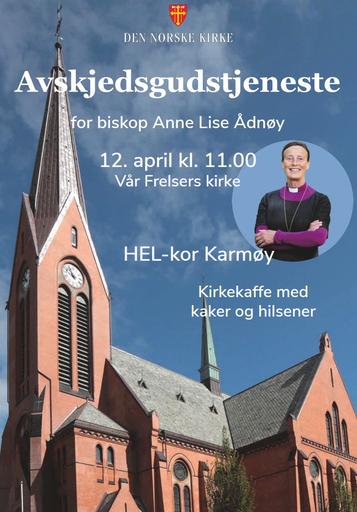 Vi får felles avskjedsgudstjeneste for biskop Anne Lise Ådnøy 12. april kl. 11:00 i Vår Frelsers Kirke